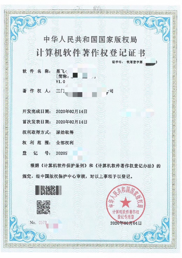 三門峽昱飛網(wǎng)絡(luò)科技有限公司取得1項(xiàng)計(jì)算機(jī)軟件著作權(quán)登記證書